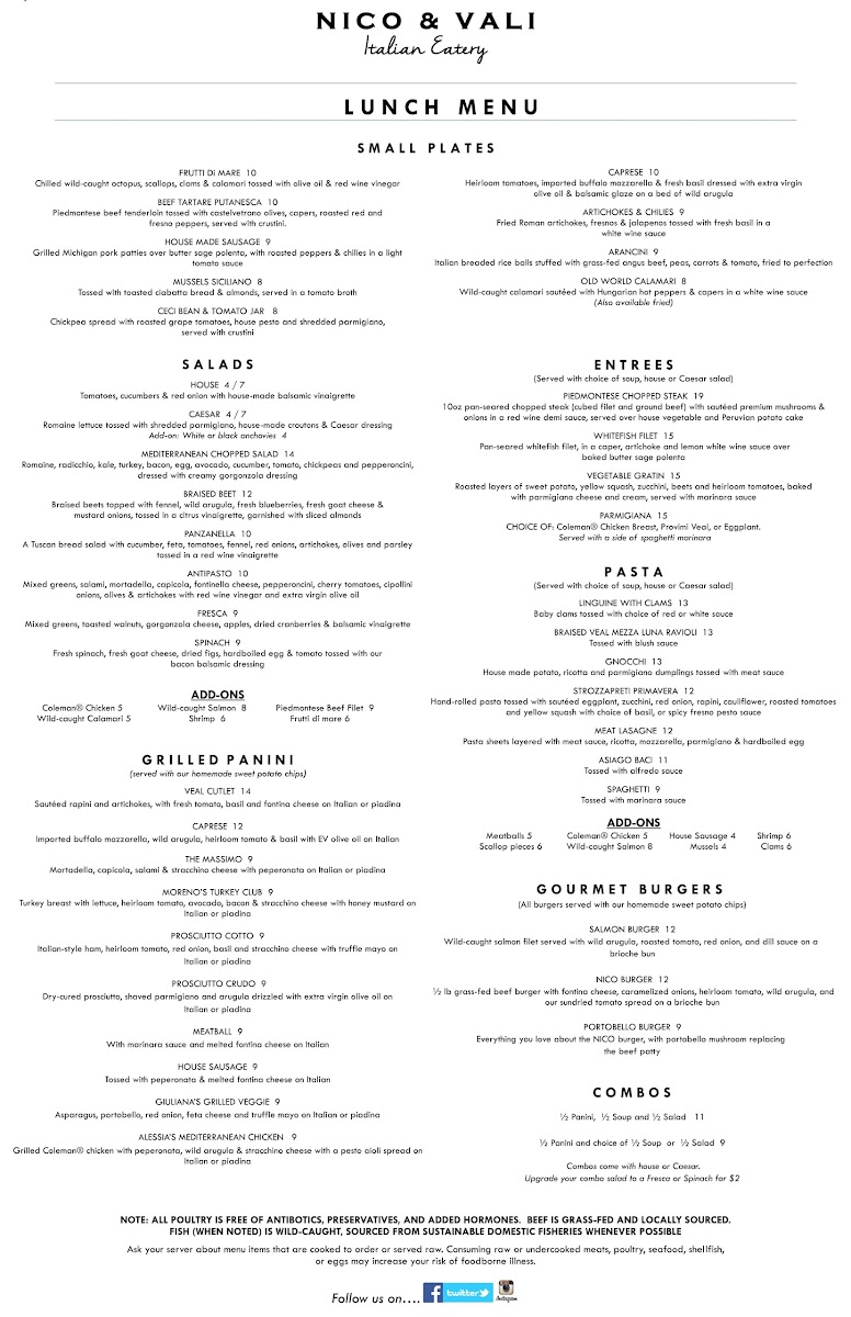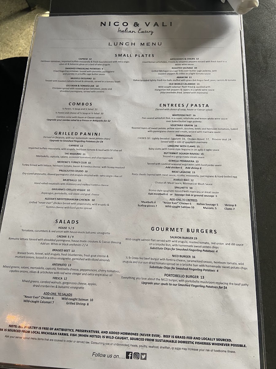 NICO & VALI Italian Eatery is a charming culinary oasis nestled in the heart of Plymouth, MI, dedicated to delivering authentic Italian cuisine that warms the soul and delights the palate. Located at 744 Wing St, this inviting restaurant has carved a niche for itself as a beloved local gem, known for its exceptional service and exquisite dishes.