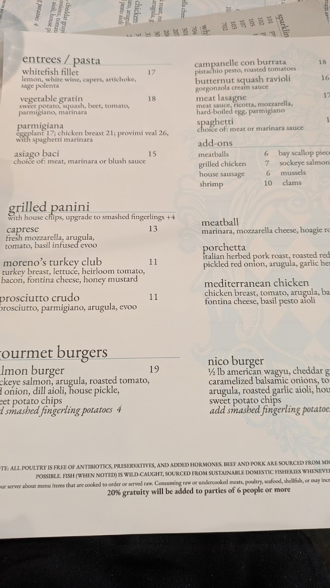 Upon stepping inside NICO & VALI, guests are greeted by a cozy atmosphere that blends rustic charm with modern elegance. The ambiance is perfectly suited for both intimate dinners and lively gatherings, whether you’re celebrating a special occasion or simply enjoying a meal with friends. The outdoor patio, praised by patrons for its tranquil setting, is an ideal spot to savor your meal al fresco, adorned with heaters for those cooler months.