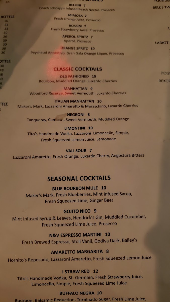 The menu at NICO & VALI is a celebration of traditional Italian flavors, featuring an array of meticulously crafted dishes that showcase the richness and diversity of the cuisine. Start your culinary journey with the sautéed calamari or the indulgent baked Brie, both of which promise a burst of delightful flavors. For pasta lovers, the Gnocchi with Wild Mushrooms stands out—a luxurious blend of mushroom medley bathed in a creamy garlic sauce, inviting you to take that first delectable bite. Alternatively, the Campanelle Con Burrata, tossed with fragrant pistachio pesto and roasted tomatoes, is a seasonal delight that awakens the senses.
